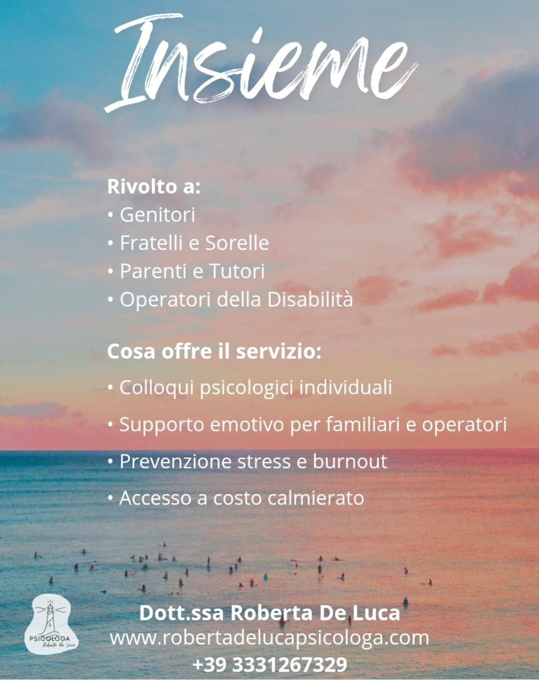 Corsi specifici sul contrasto alla Violenza di Genere, sul Sostegno ai Minori Vittime di Crimini Domestici e sulla Psicologia Subacquea, integrando l’immersione (presso Diving Center PADI) come strumento per (re)-imparare a gestire ansia, respirazione, accrescere la fiducia in sé stessi e nelle relazioni.